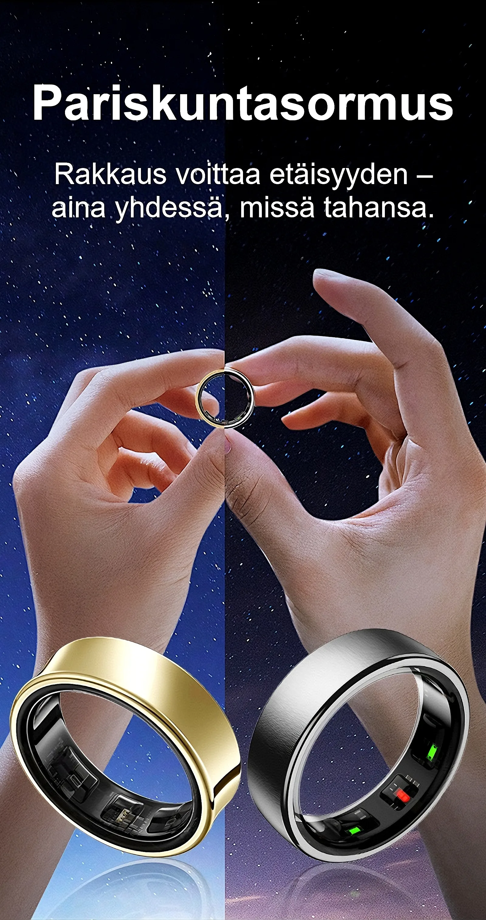 Korkean tarkkuuden kaksoissiru tarjoaa sairaalatason seurantaa ja tukee sykettä, HRV:tä, happisaturaatiota, unta, stressiä ja kuukautiskierron hallintaa.